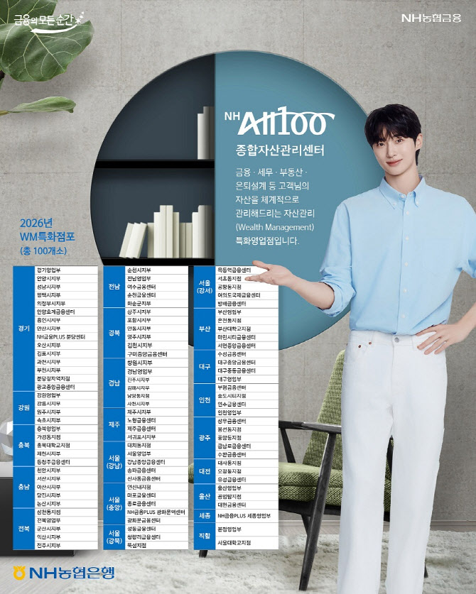 [이코노미스트 이병희 기자] NH농협은행이 WM특화점포인 ‘NHAll100종합자산관리센터’를 총 100개소로 확대했다고 10일 밝혔다.