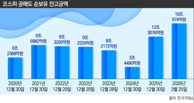 공매도 16조 ‘사상 최대’...코스피 하락 베팅 ‘눈덩이’